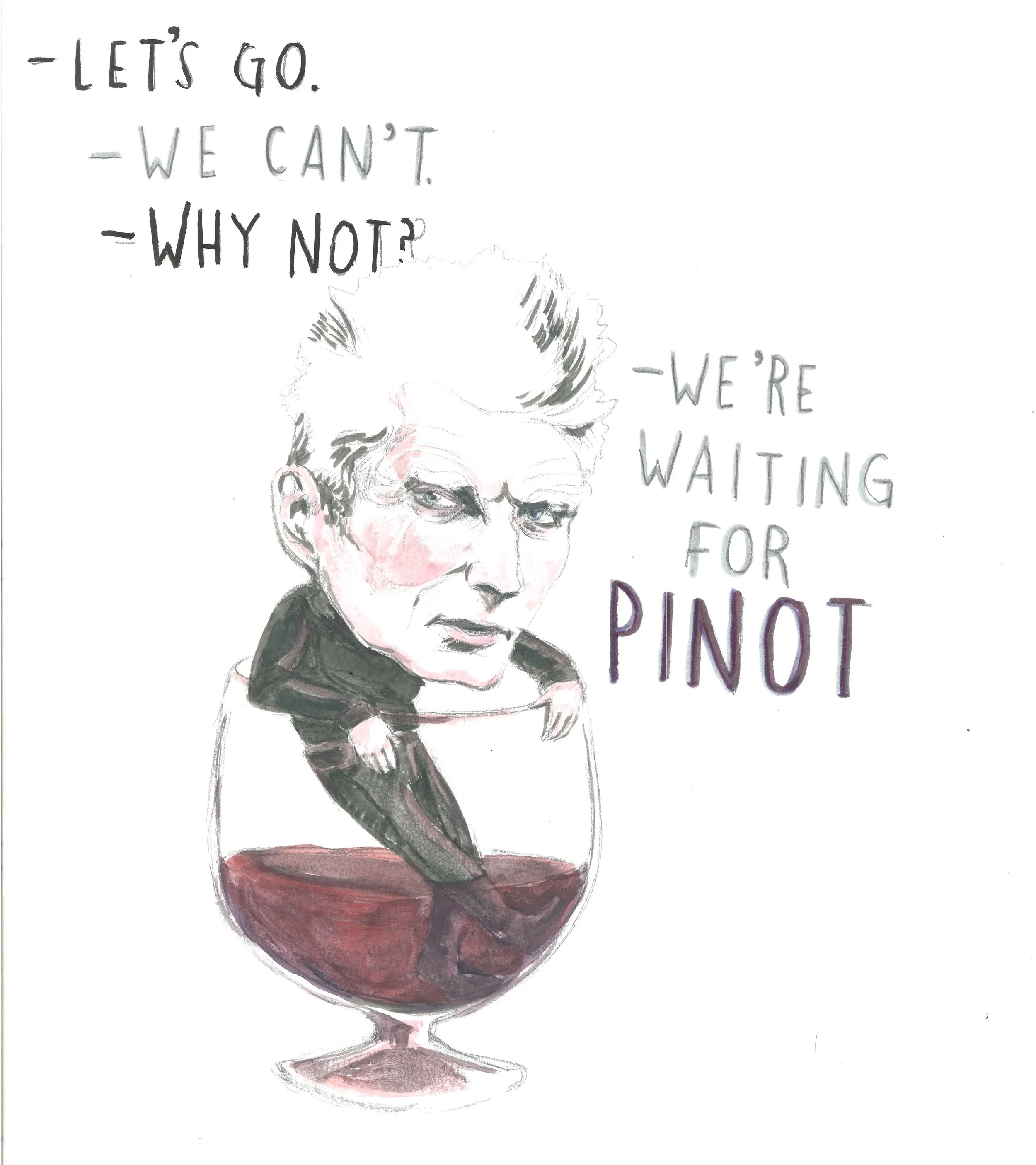 "Let's go." "We can't." "Why not?" "We're waiting for pinot." — Samuel Beckett