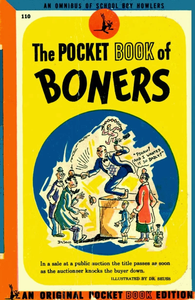 But he also wrote: The Pocket Book of Boners — though it’s not what you think. Boner means blooper, you guys. Stop being gross.