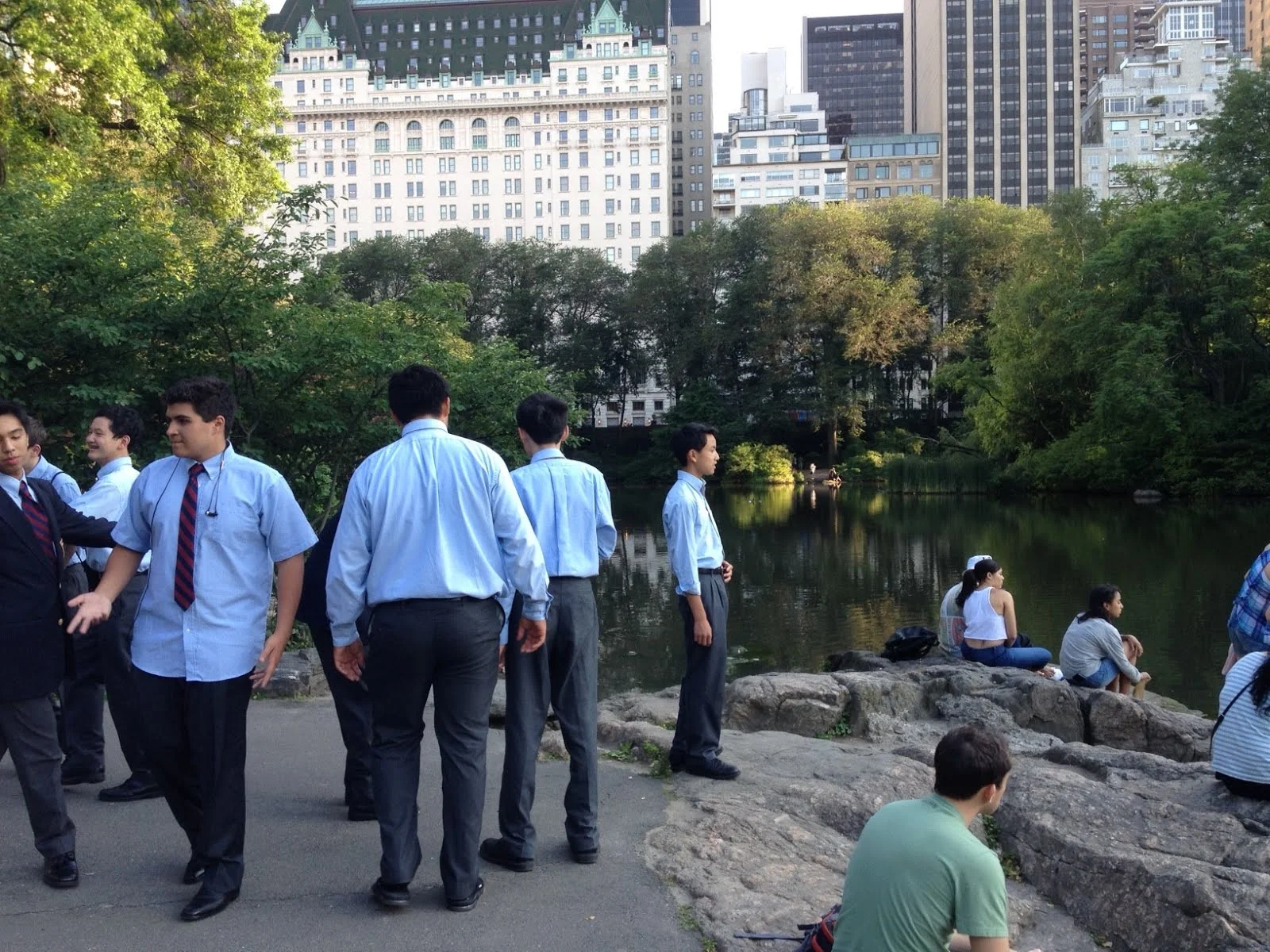 Realizing I was at the wrong body of water, I headed south to the Pond. It was filled with ducks. There was a man fishing, and as he reeled one in, I noticed that there were young prep school boys everywhere — all in navy blazers adorned with their school insignia, with maroon-striped ties, button-ups and slacks. I assume they had gathered there after their last day of school, but it was Sunday. For a second, I entertained the possibility that they had all run away from their boarding school.