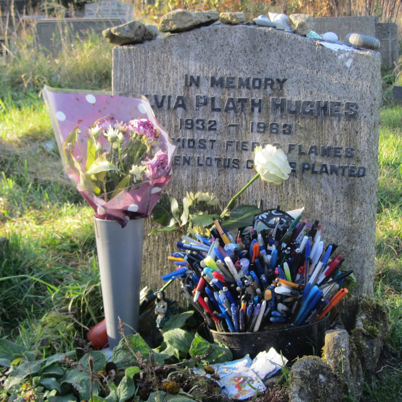 Plath was buried at St.Thomas's Churchyard, Heptonstall, England, with an epitaph that reads "Even amidst fierce flames the golden lotus can be planted," slightly mistranslated from the 16th century Chinese folk novel Monkey by Wu Ch’Eng-Enby. The tombstone reads "Sylvia Plath Hughes" since she was married to Ted Hughes at the time of her death — however, several Plath fans have chiseled off Hughes’s name, believing that his adultery was one of the main reasons for Plath's suicide. Currently, the "Hughes" portion has been set in more chisel-proof bronze.