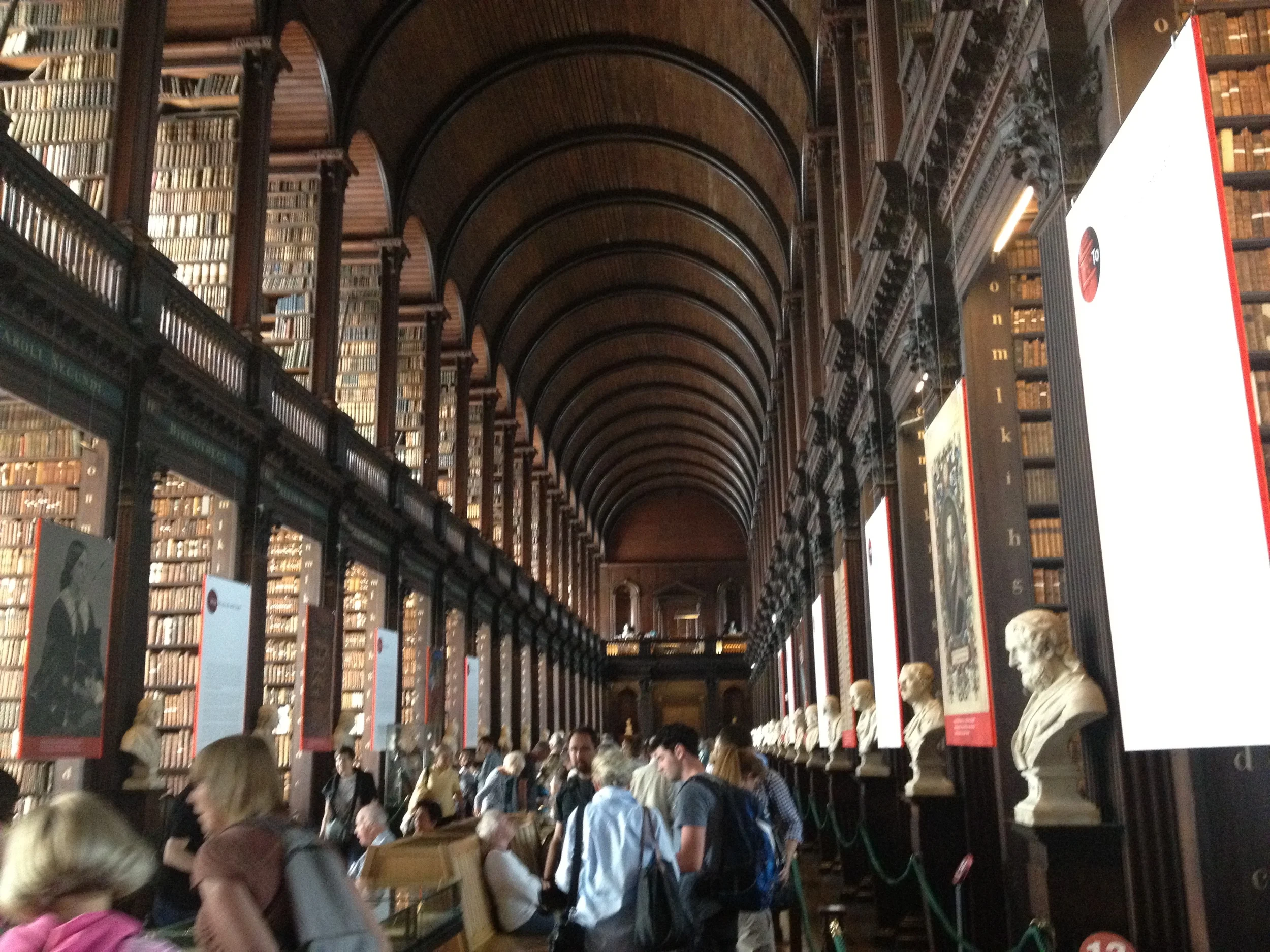 Pretty spectacular. The rows and rows of antique tomes stacked against a backdrop of dark wood and white marble sets a tone that is nothing short of Hogwartsian. The library is also home to a permanent exhibition that features the Book of Kells, a medieval book of hours that may be the oldest bound book intact today. Trinity College is also the alma mater of writers like Jonathan Swift, Bram Stoker, Oscar Wilde, and Samuel Beckett.