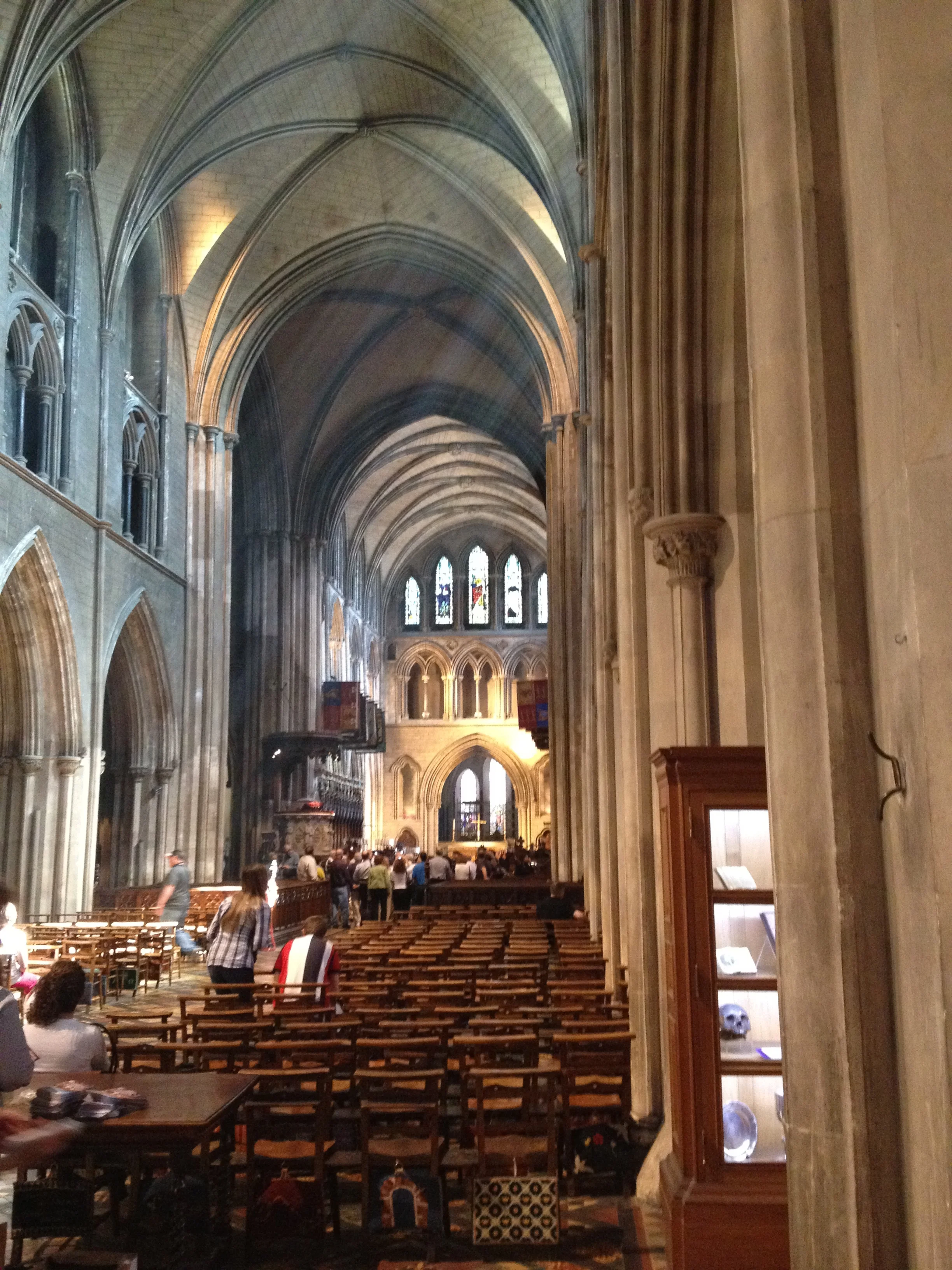 Jonathan Swift, author of Gulliver's Travels and A Modest Proposal, was not only a highly religious man (he also wrote An Argument Against Abolishing Christianity), but also the Dean of St. Patrick's Cathedral, the seat of the Church of Ireland (the Episcopal Church stateside). When you face the front of the sanctuary just inside the front door, there's a wall plaque dedicated to his memory and achievements, both clerical and authorial.