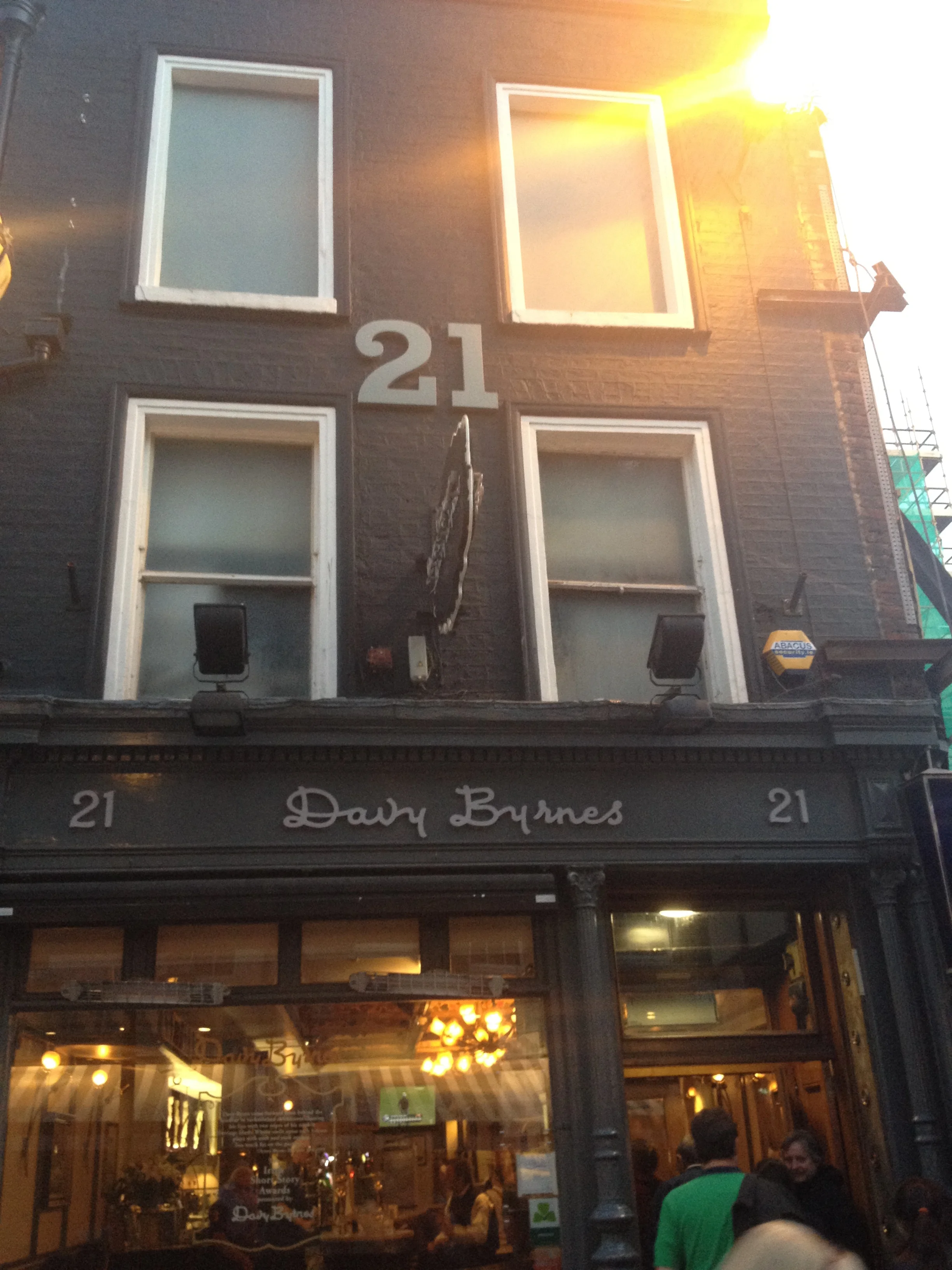 M.J. O'Neill's is a restaurant and pub located in central Dublin. It was a favorite haunt of famed Irish drinkers/writers James Joyce and Oscar Wilde. It's also known for its unique Victorian architecture and décor. The maze of rooms includes several nooks and hidden side-rooms that were meant for women to drink in secret when the Church forbade co-ed pubs.